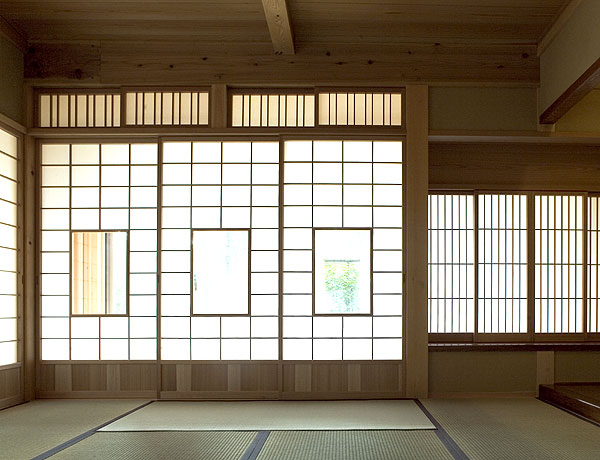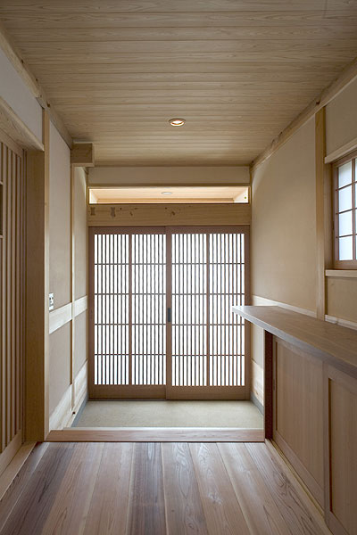 壁:土壁の上に漆喰塗り、杉板張り