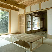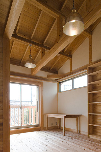 天井:杉板張り、小屋組現し